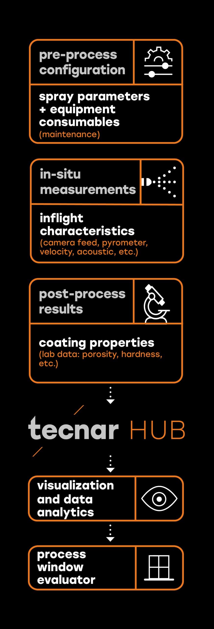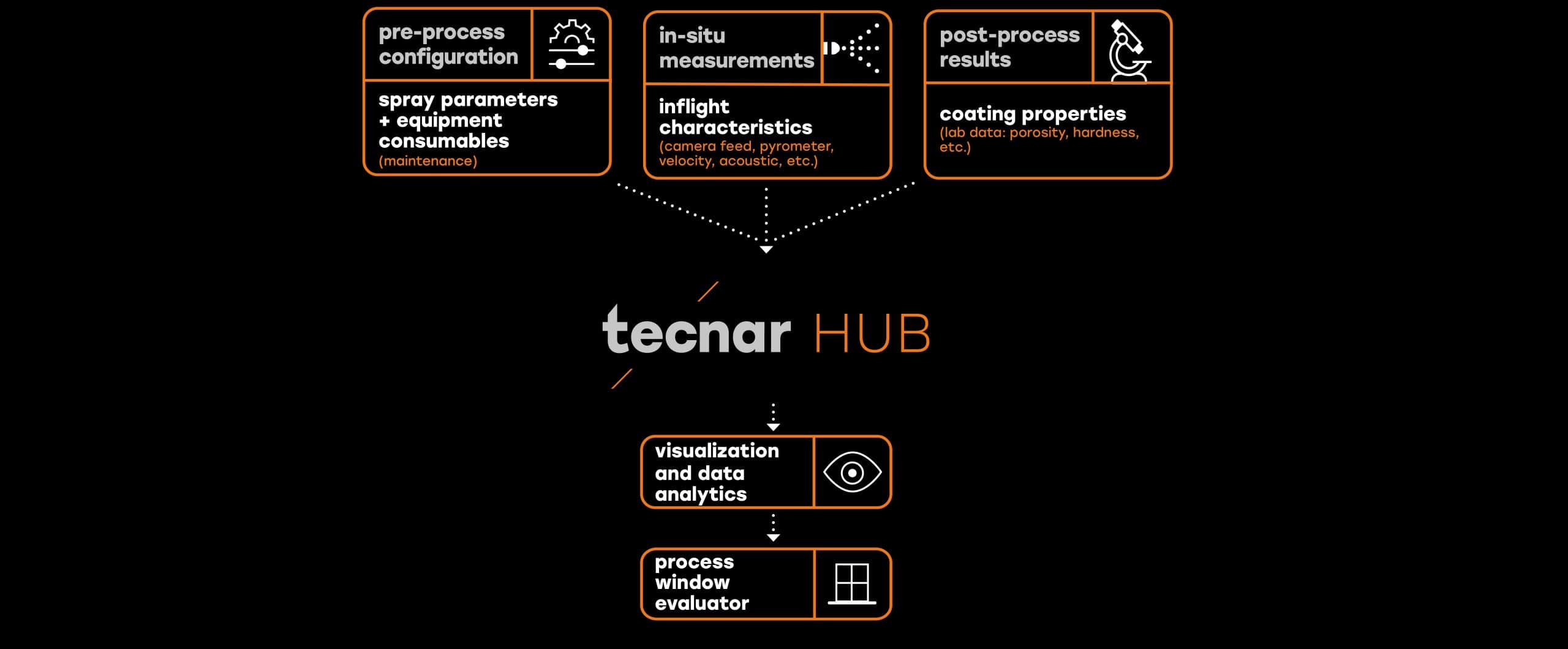 Le Tecnar HUB consolide les données de projection thermique pour une analyse facile, un post-traitement automatisé et une évaluation précise des conditions. Il optimise les fenêtres de processus pour des revêtements de haute qualité et des opérations efficaces à travers plusieurs cabines de projection.